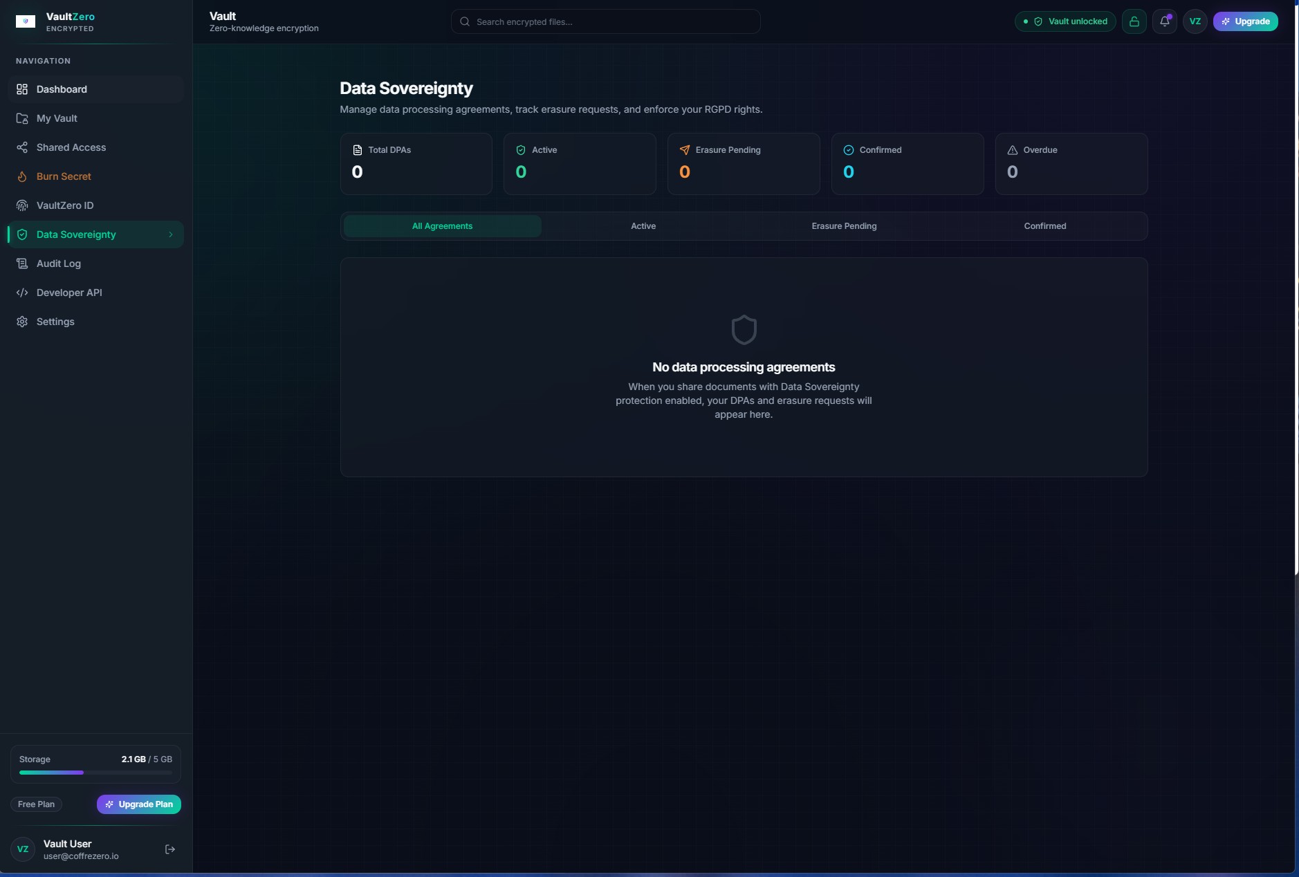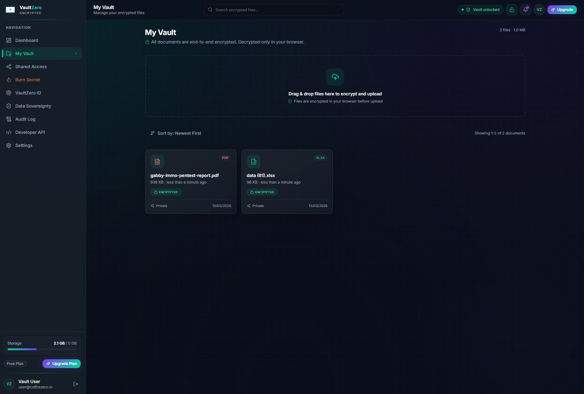 Core ProductClick to view full sizeThe encrypted vault where documents are stored, organized, and managed with full client-side decryption.